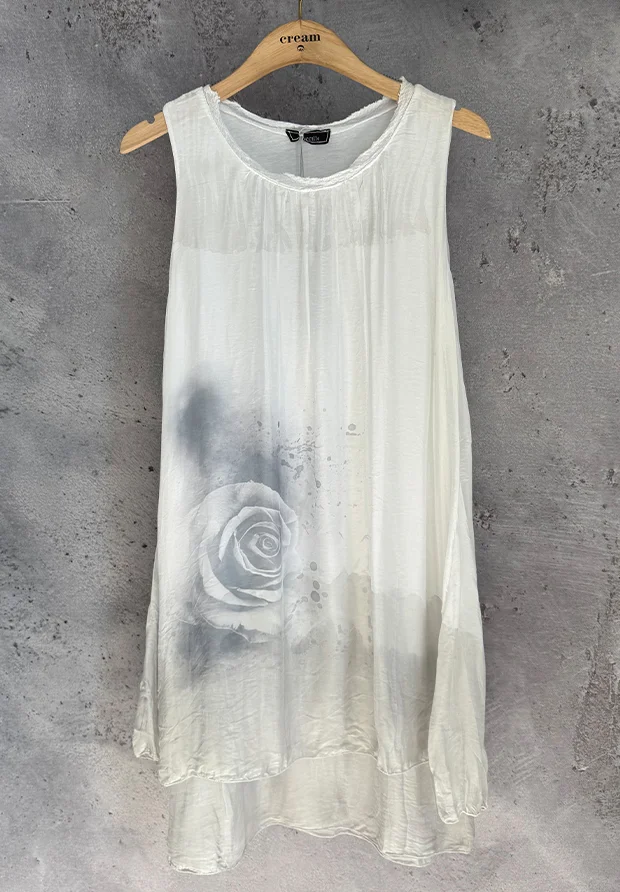 MADE IN ITALY LUPO MODA WŁOSKA JEDWABNA BIAŁA SUKIENKA W SZARE RÓŻE / UNI
