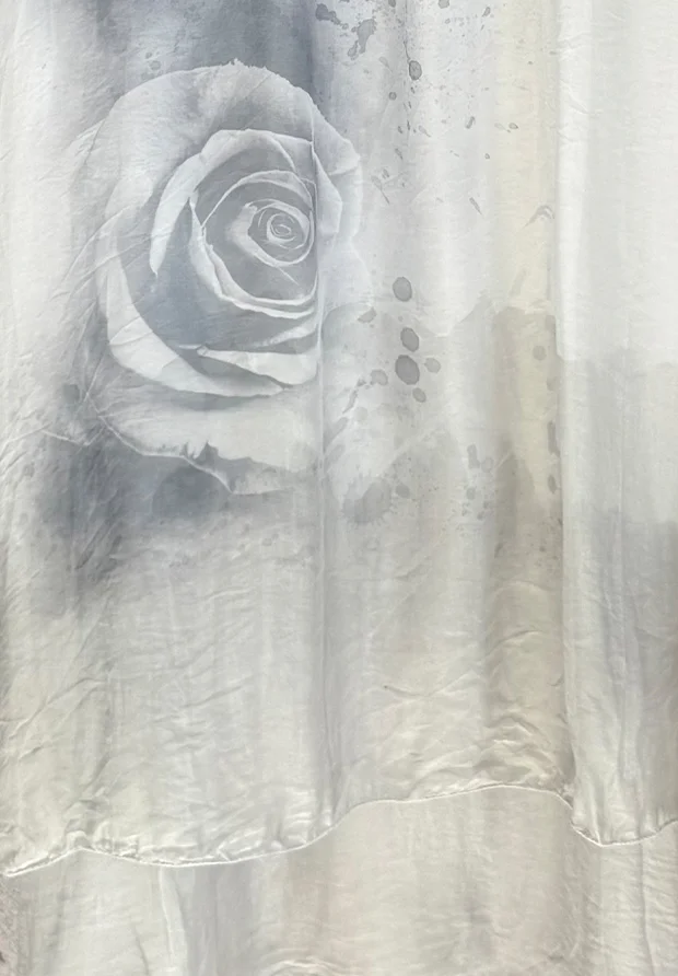 Made in Italy – Jedwabna Sukienka z Cekinami – Szara Róża Efekt 3D