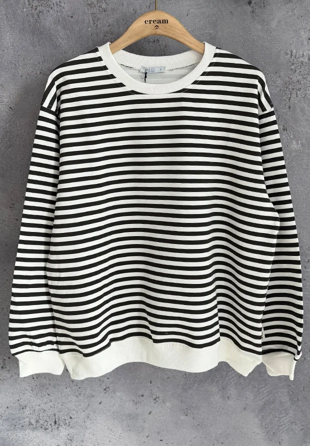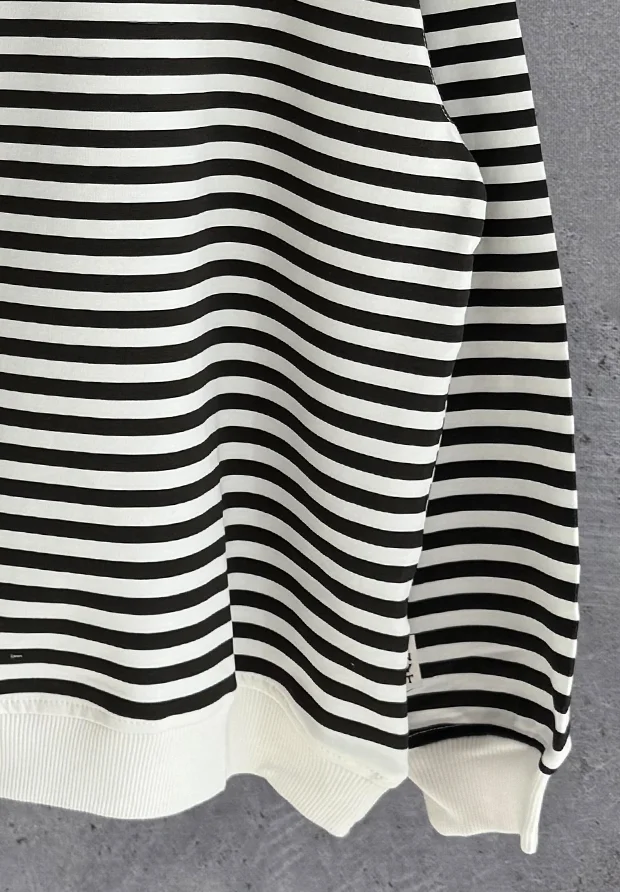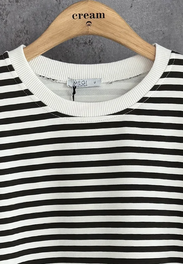 Dekolt , rękawy oraz dół zakończone prążkowanym ściągaczem.