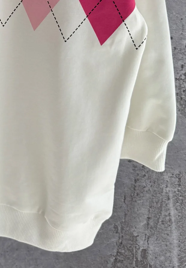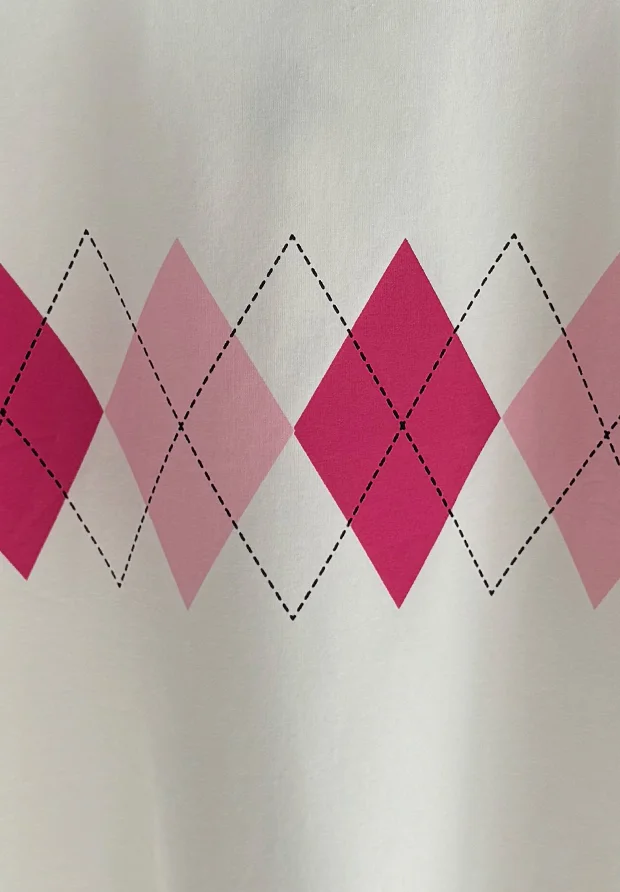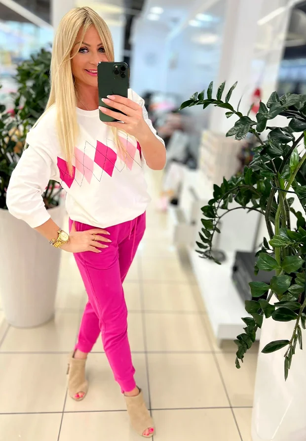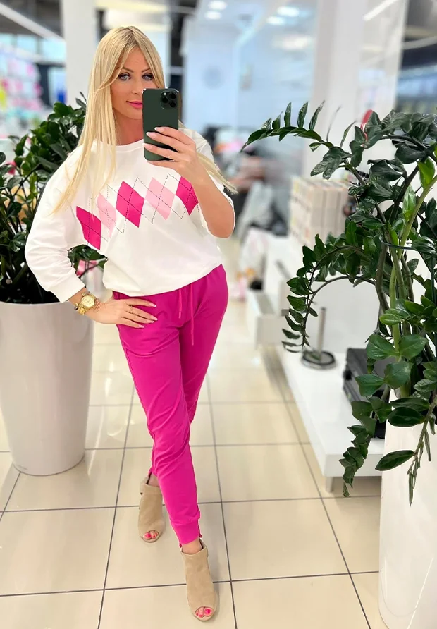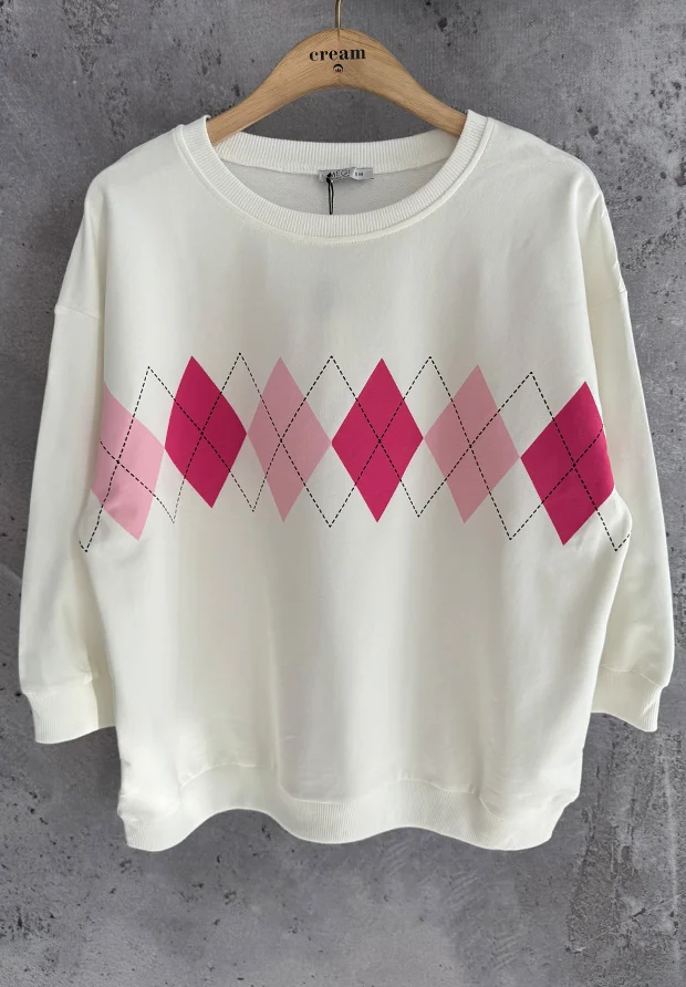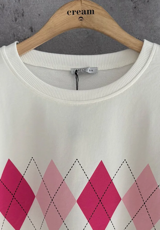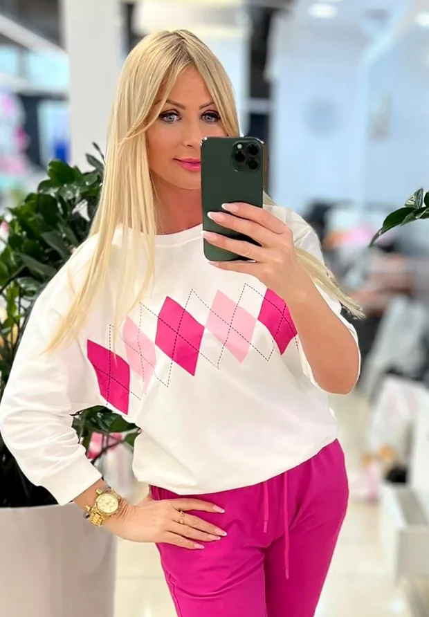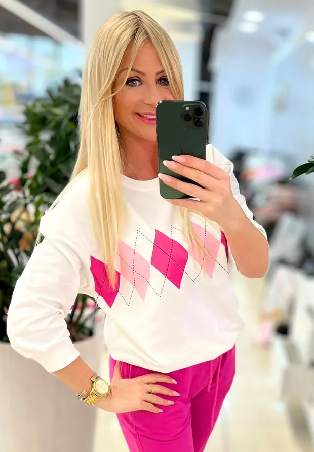 MEGI BIAŁA BLUZA W ROMBY / FUKSJA & CUKIERKOWY RÓŻ / B2876