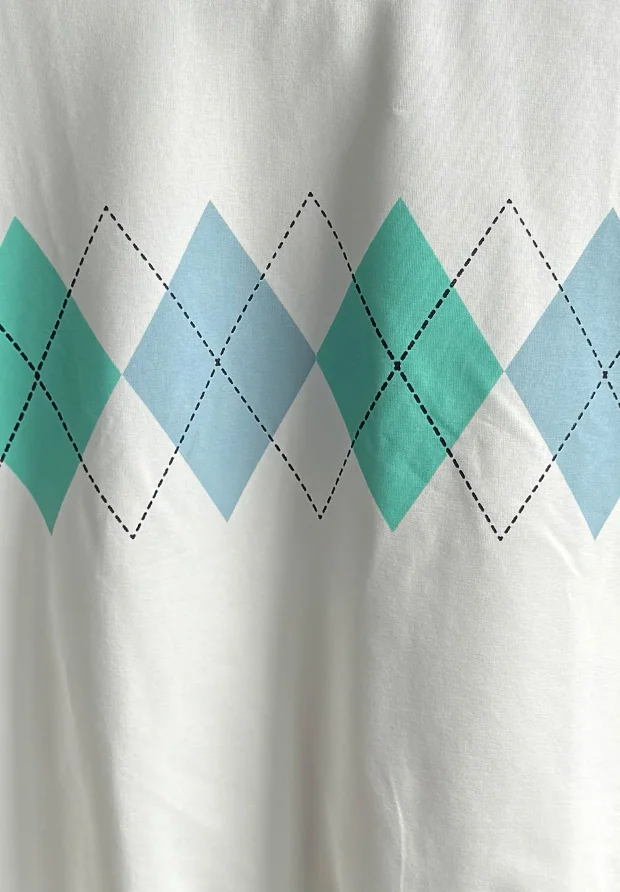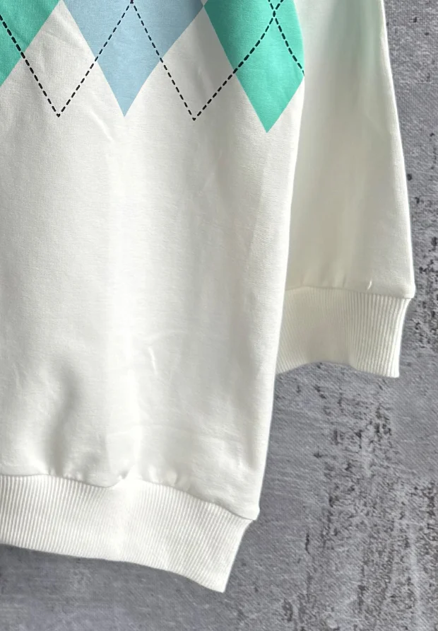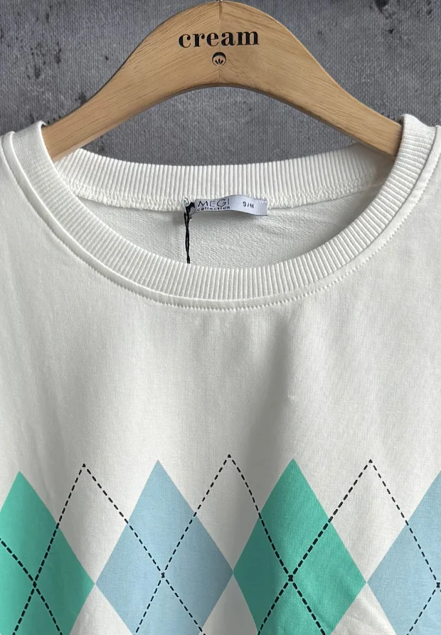 MEGI BIAŁA BLUZA W ROMBY / MIĘTA & JASNO NIEBIESKI / B2876