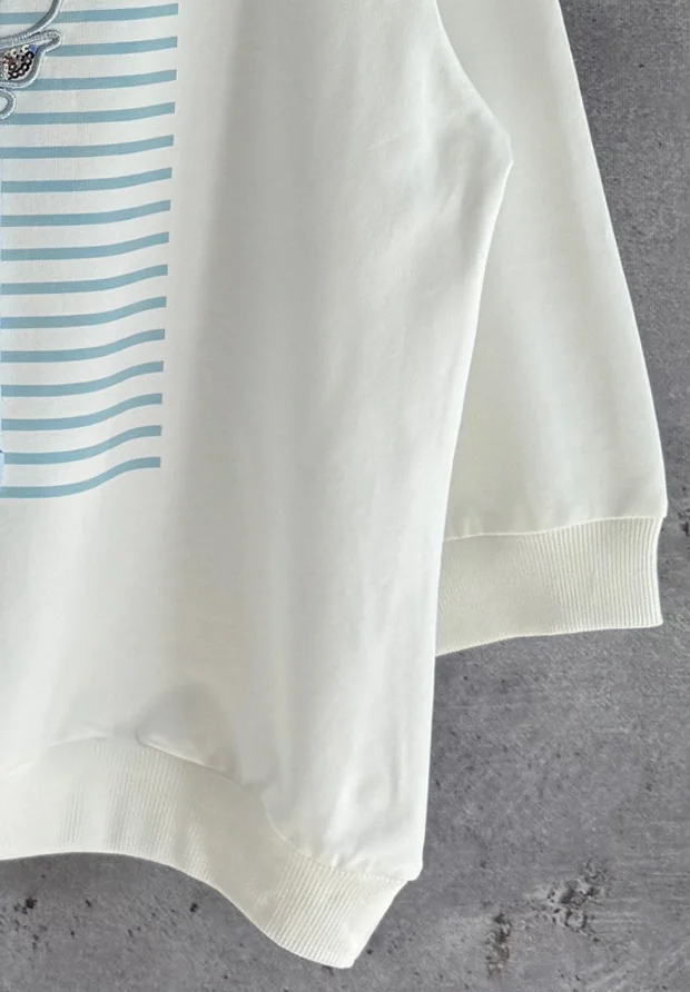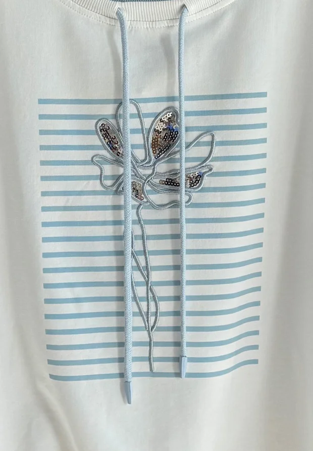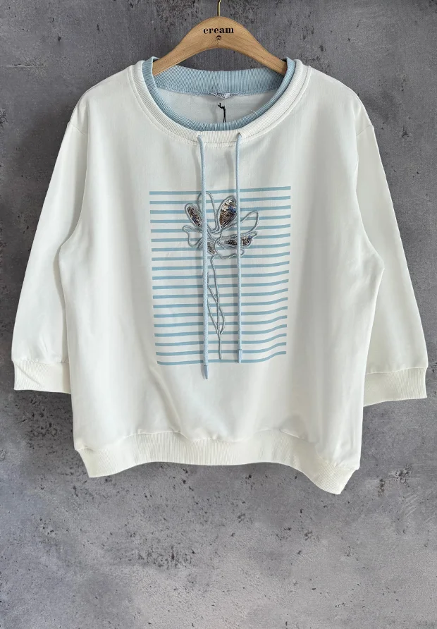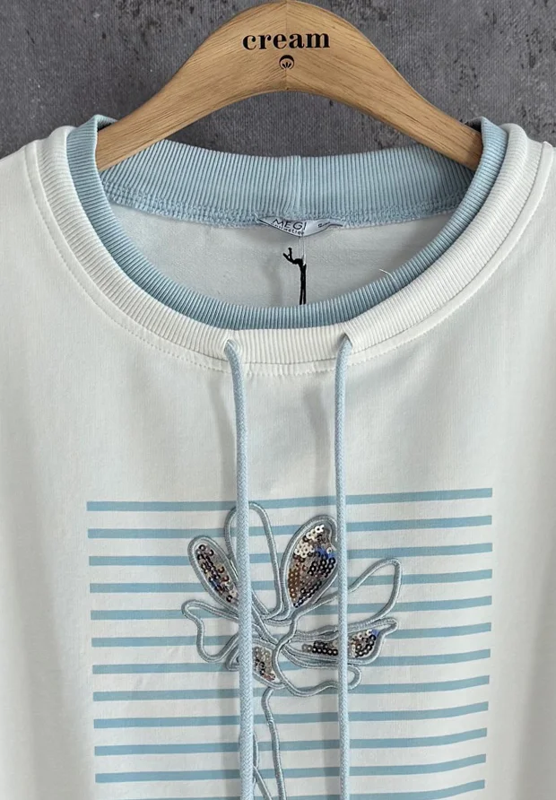 MEGI BIAŁA BLUZA Z JASNO NIEBIESKIM HAFTOWANYM KWIATEM / M6018