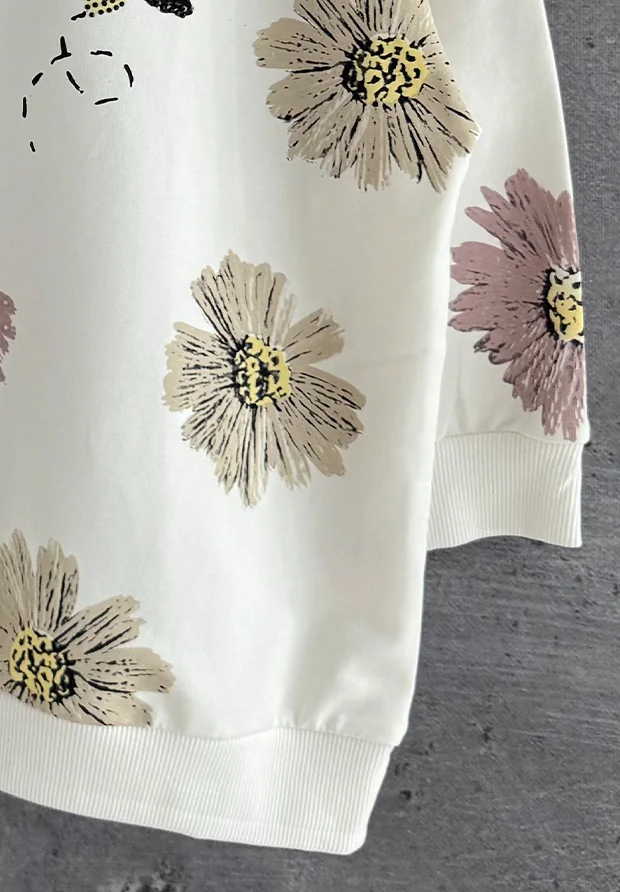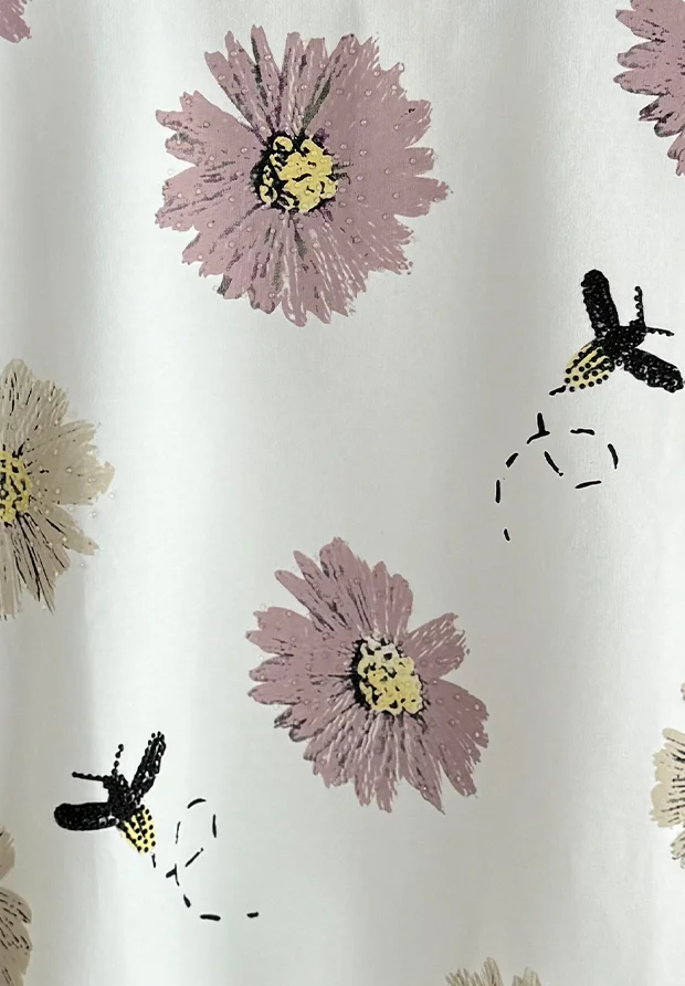 Na całości nadruk w kwiaty oraz pszczółki. Z przodu nadruk zdobiony cyrkoniami.
