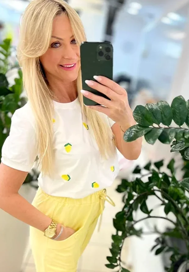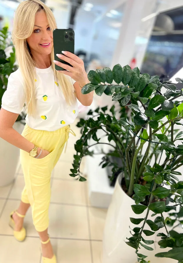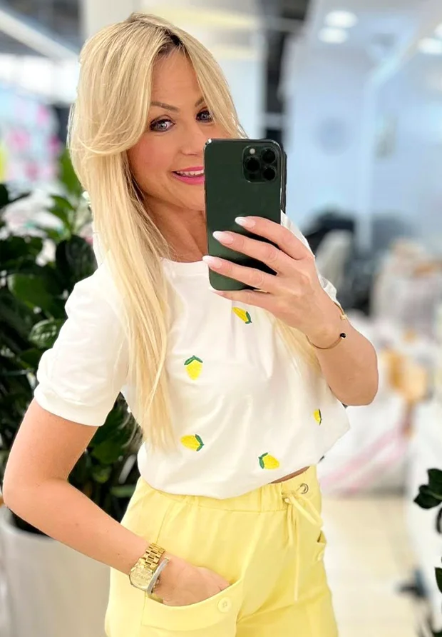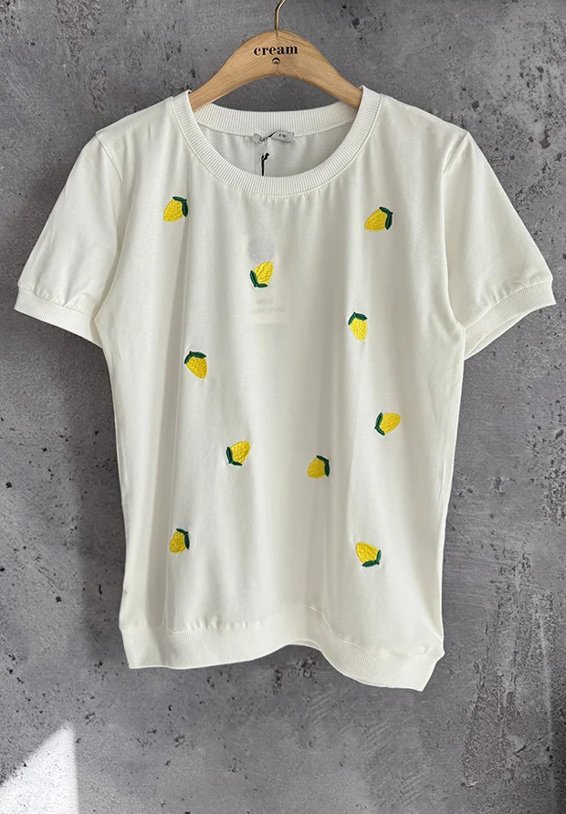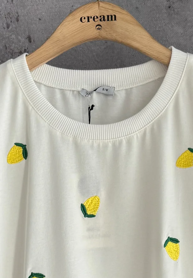 MEGI BIAŁA BLUZKA T-SHIRT W HAFTOWANE CYTRYNKI / B2859