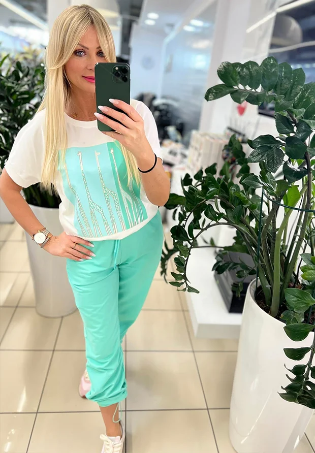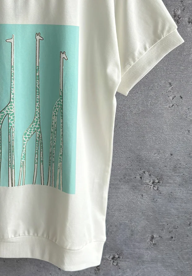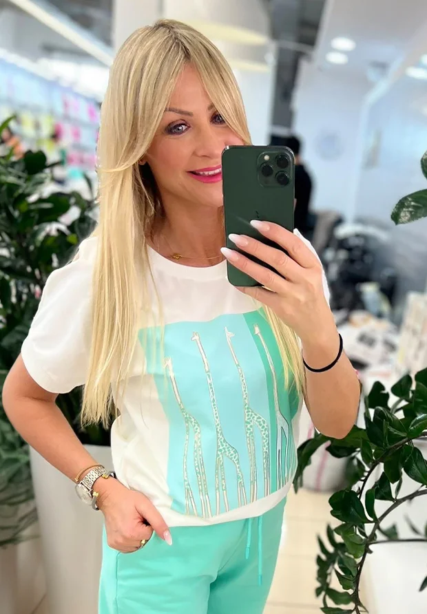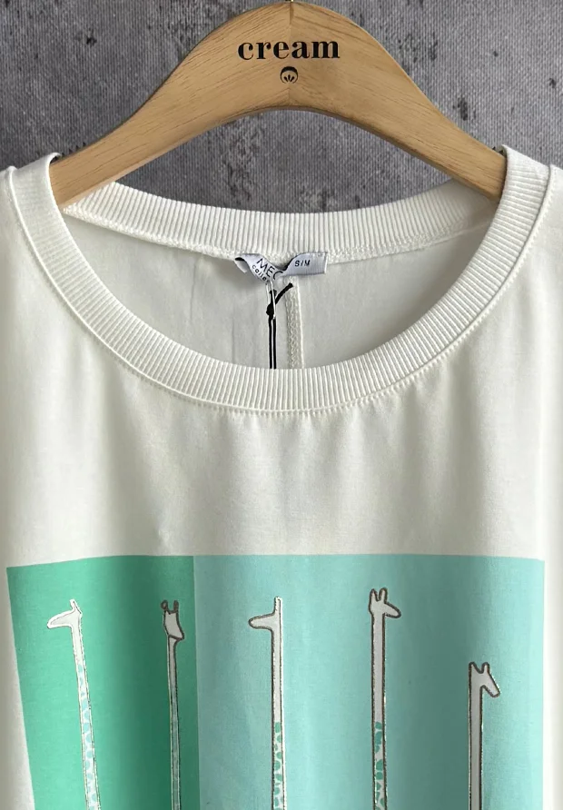 MEGI BIAŁA BLUZKA T-SHIRT W ŻYRAFY / MIĘTA & AQUA / B2955