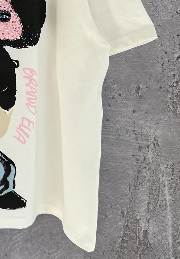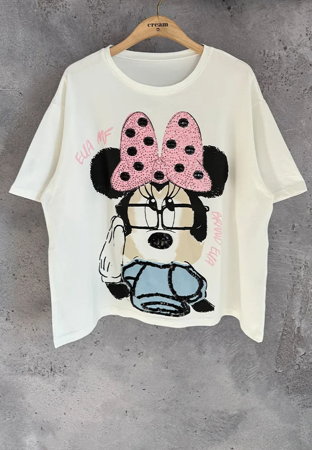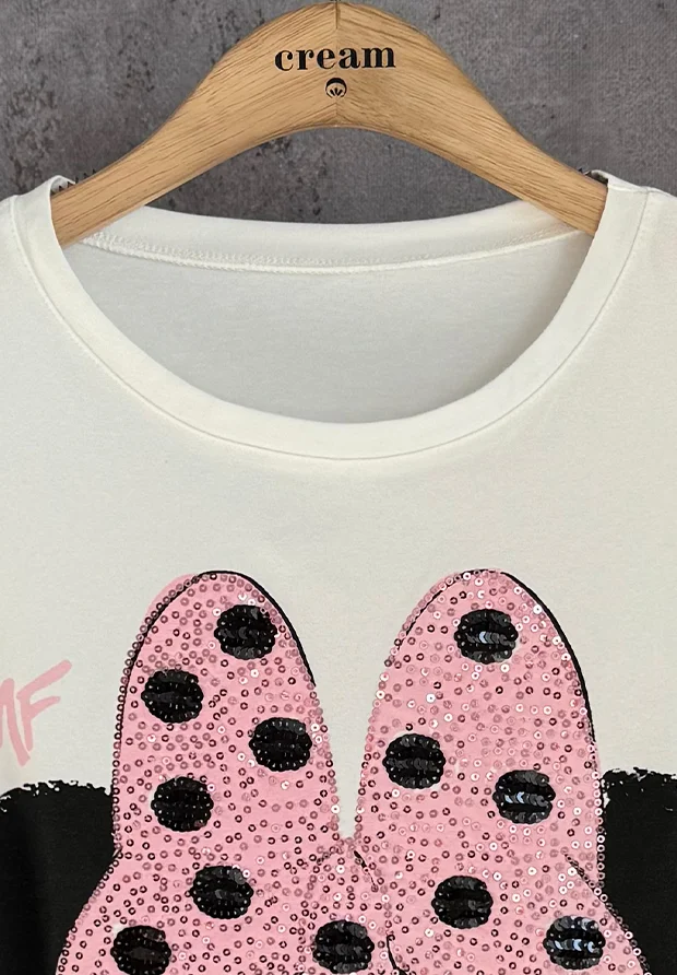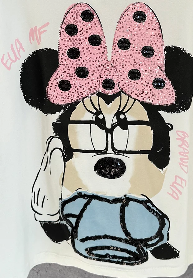 Z przodu nadruk z myszką , zdobiony cekinami.