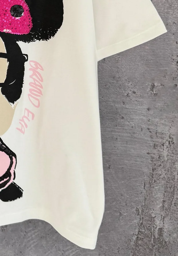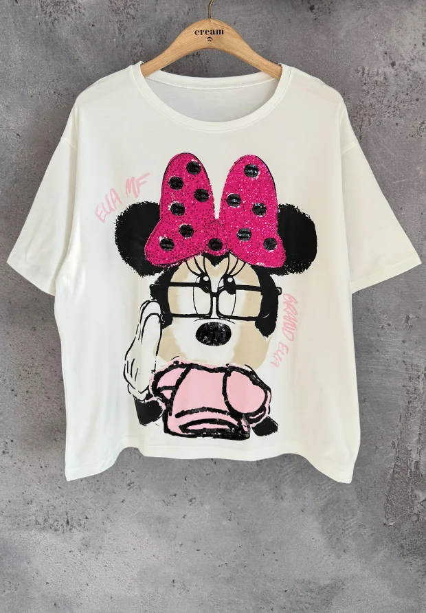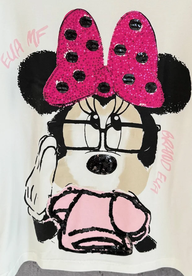 Z przodu nadruk z myszką , zdobiony cekinami.