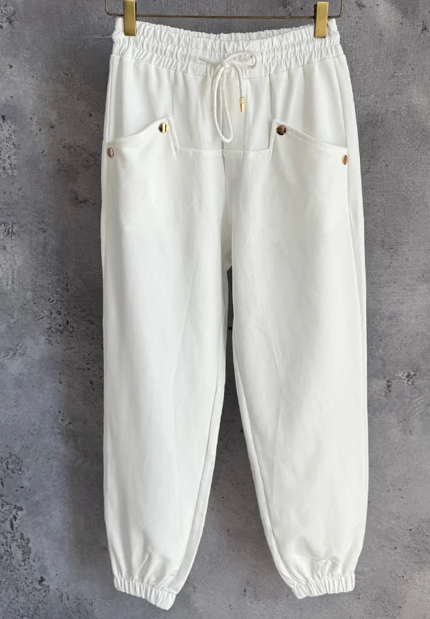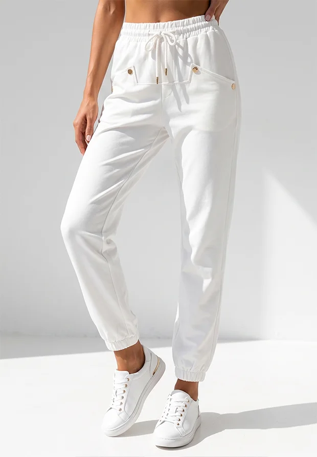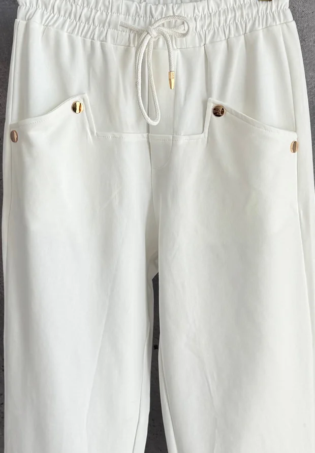 MEGI BIAŁE SPODNIE DRESOWE ZE ZŁOTYMI NAPAMI / P1223