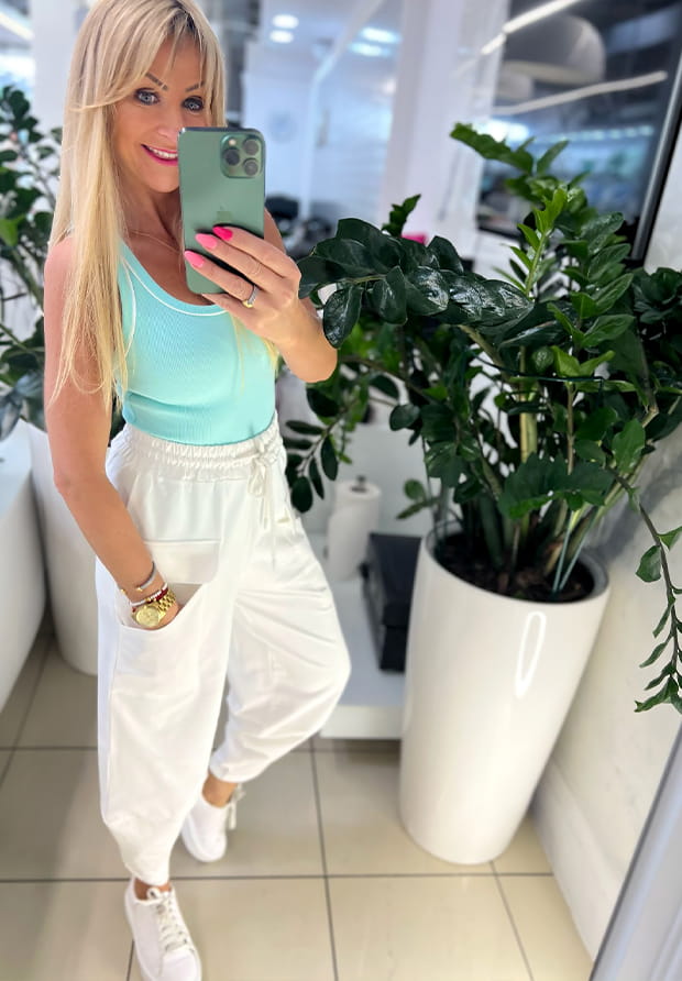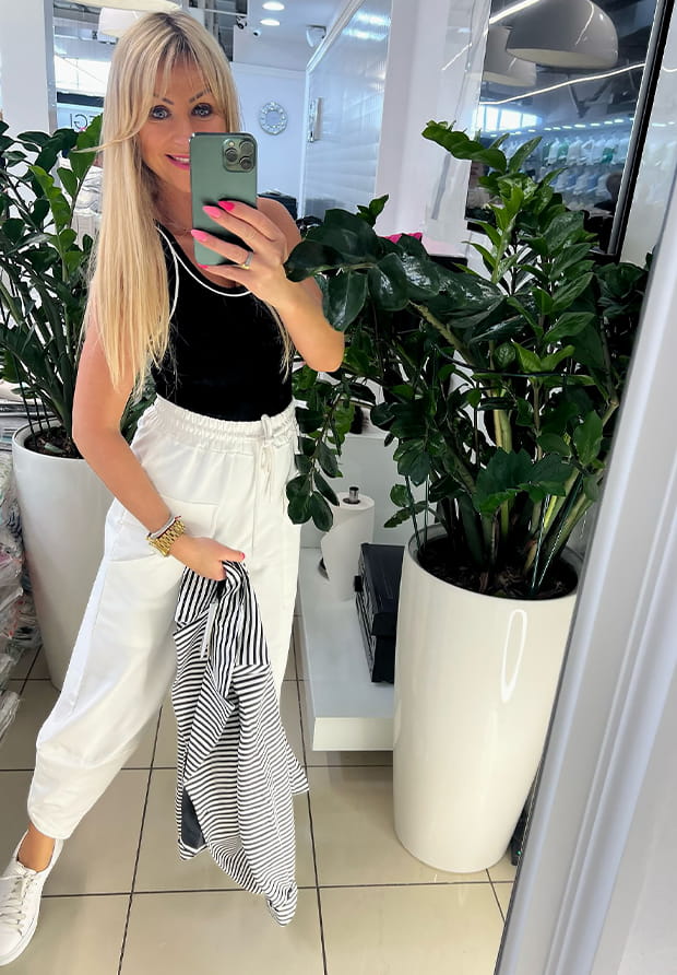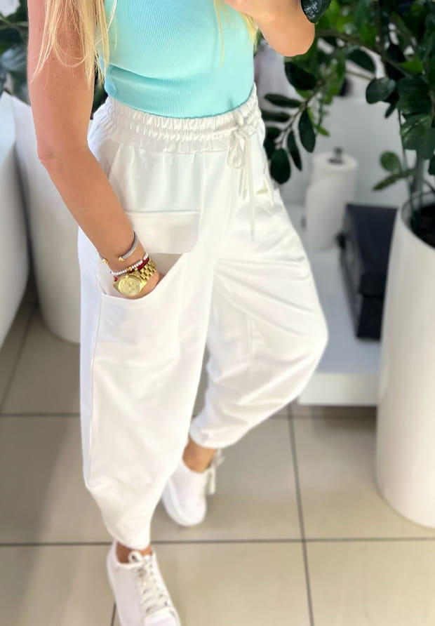 MEGI BIAŁE SPODNIE TULIPANY Z PATKAMI / P1207
