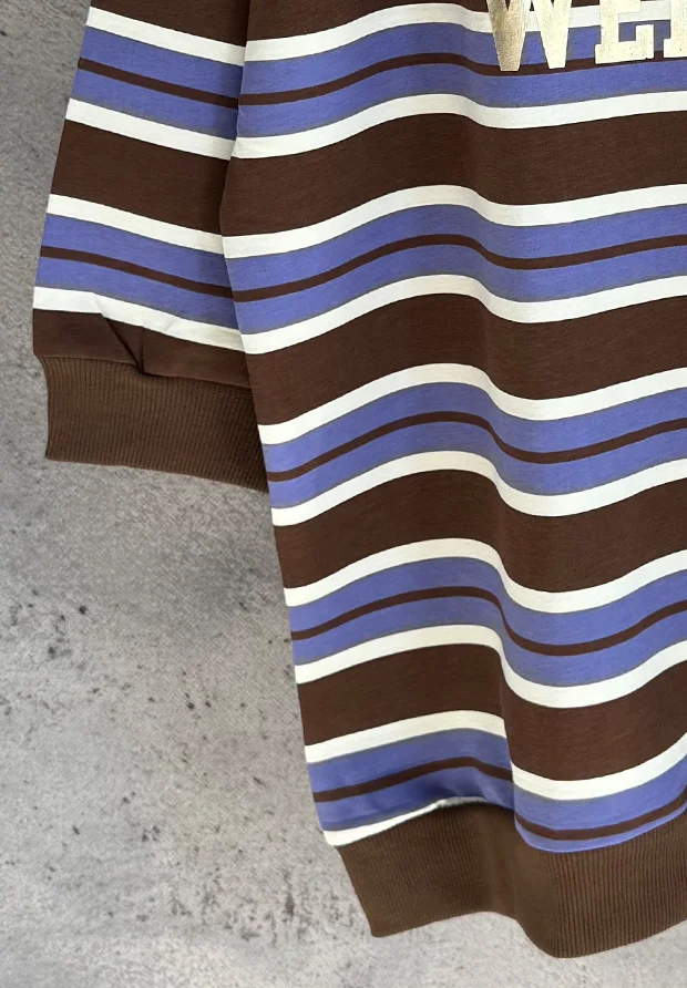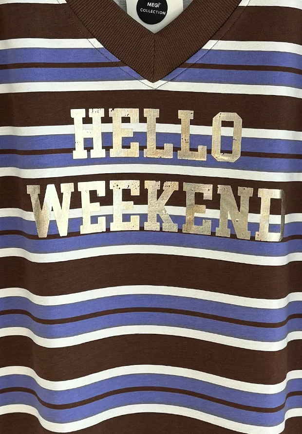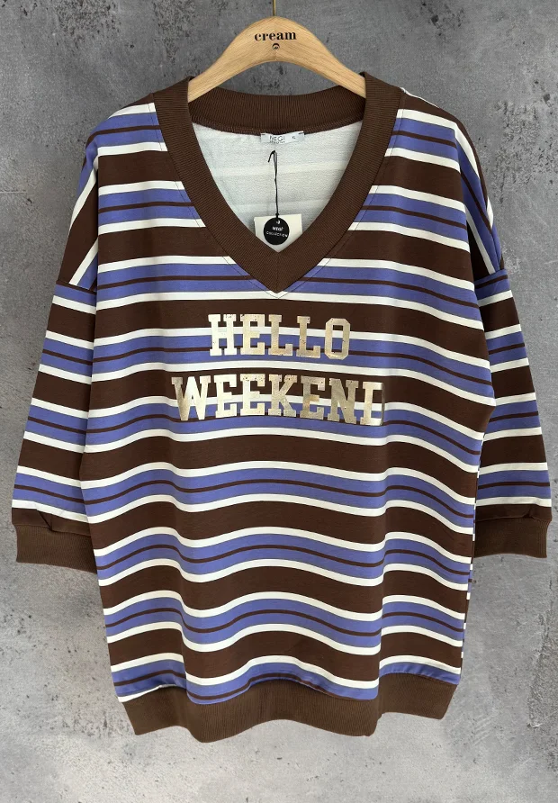 Luźna, dłuższa bluza w paski z nadrukiem HELLO WEEKEND