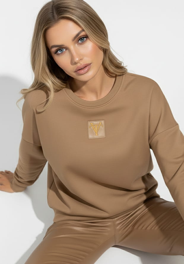 MEGI CAPPUCCINO BLUZA Z NASZYTYM ZNACZKIEM / B2541
