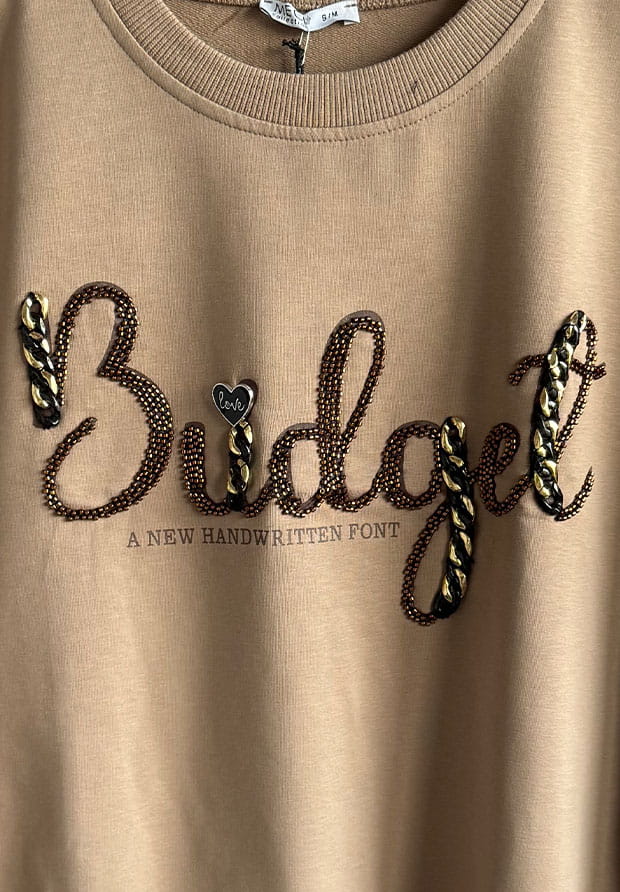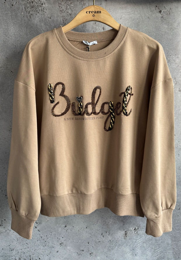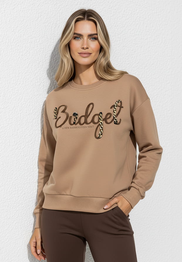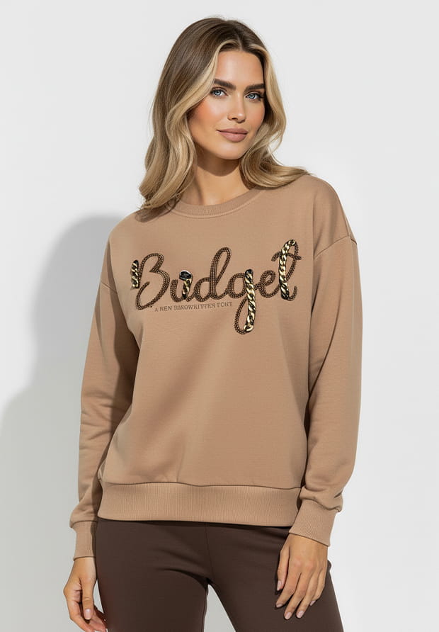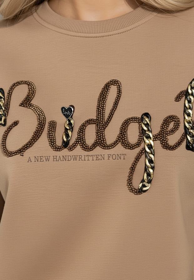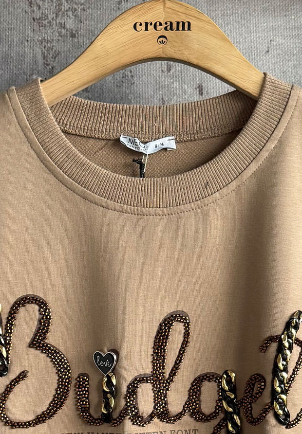 MEGI CAPPUCCINO BLUZA Z PIĘKNIE ZDOBIONYM NAPISEM / KORALIKI & ŁAŃCUSZKI / B2448
