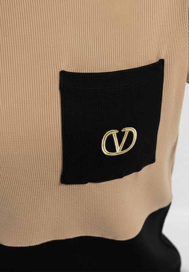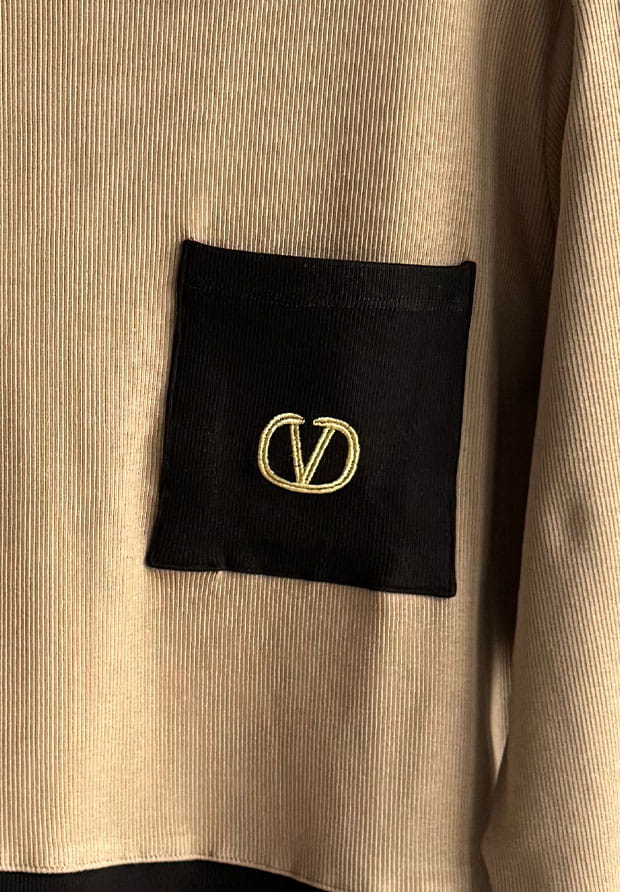 Dekolt okrągły. Z przodu kieszonka ze złotym haftem.