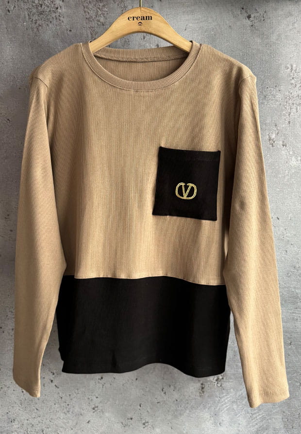MEGI CAPPUCCINO PRĄŻKOWANA BLUZKA Z CZARNĄ KIESZONKĄ / B2547