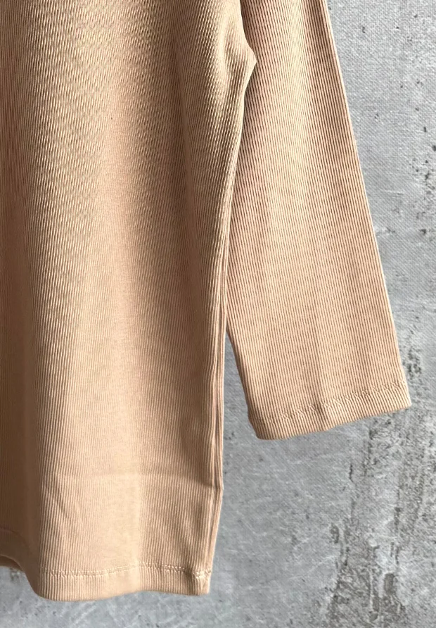 Bluzka uszyta z mięsistego , gęstego materiału prążkowanego.