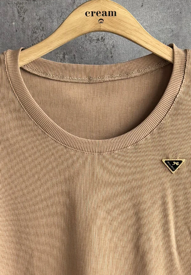 MEGI CAPPUCCINO PRĄŻKOWANA BLUZKA Z OZDOBNĄ NASZYWKĄ / B1359