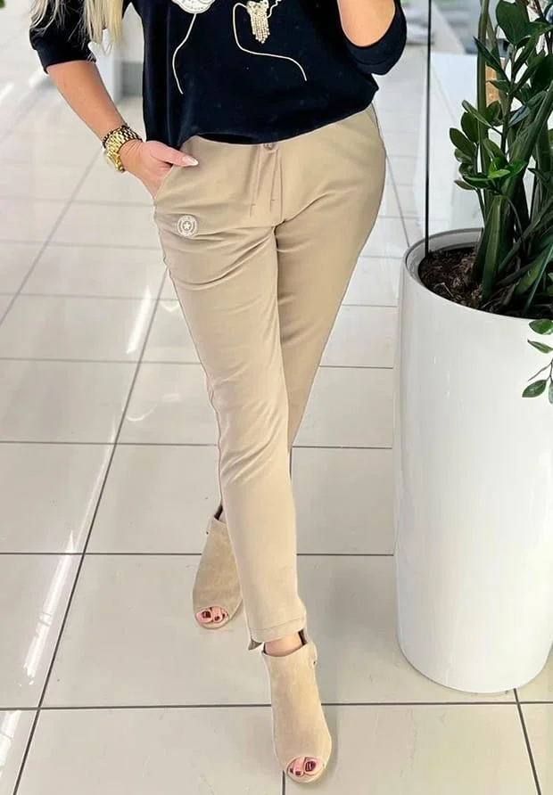 Talia elastyczna , ściągana troczkami.