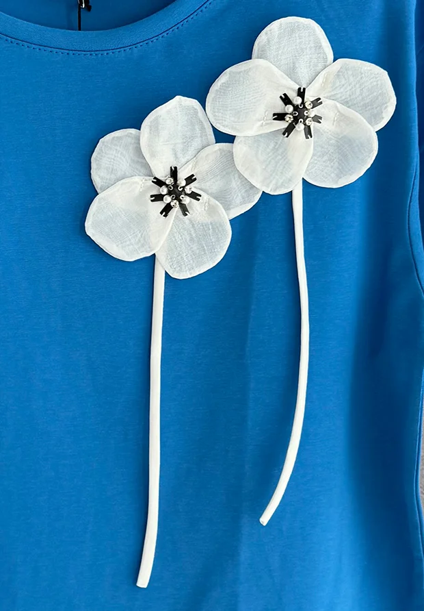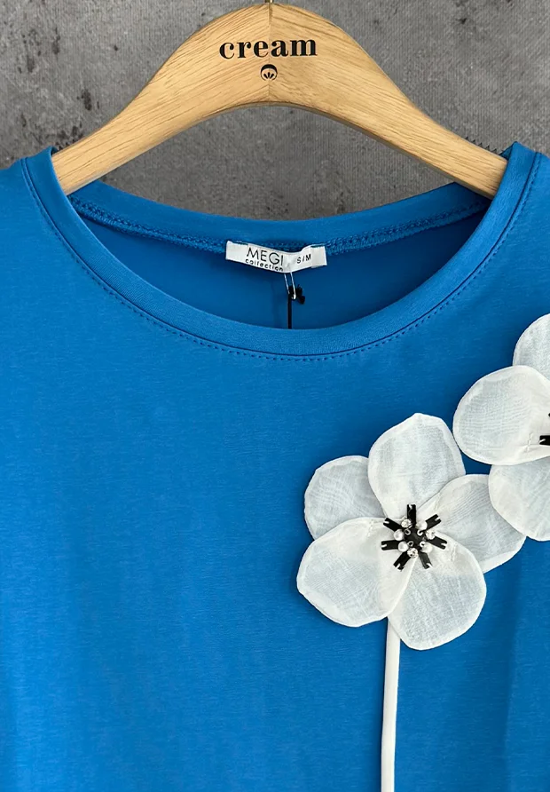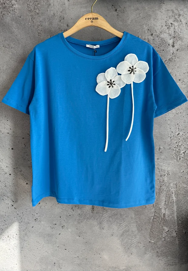 MEGI CHABROWA BLUZKA T-SHIRT Z KWIATEM 3D / PEREŁKI & CYRKONIE / B2824