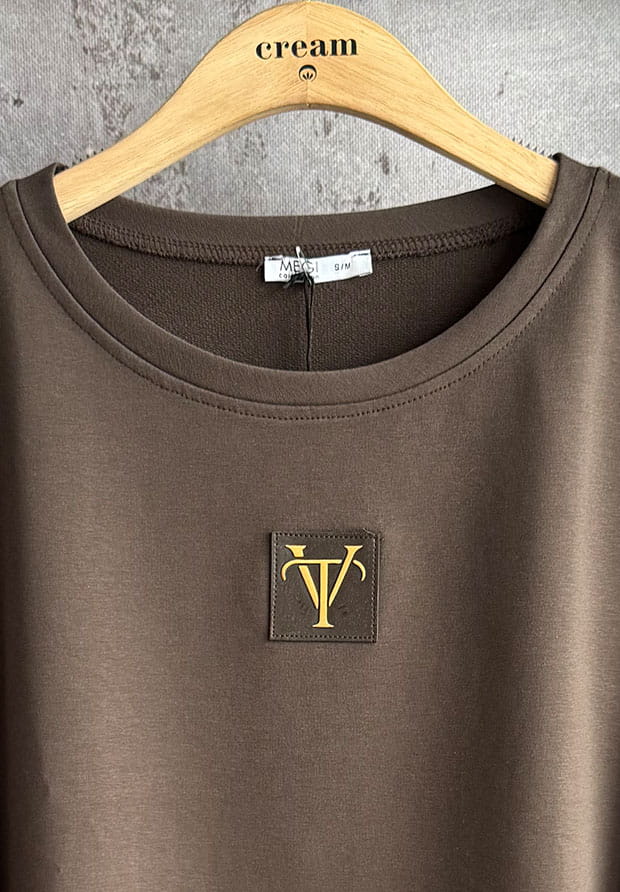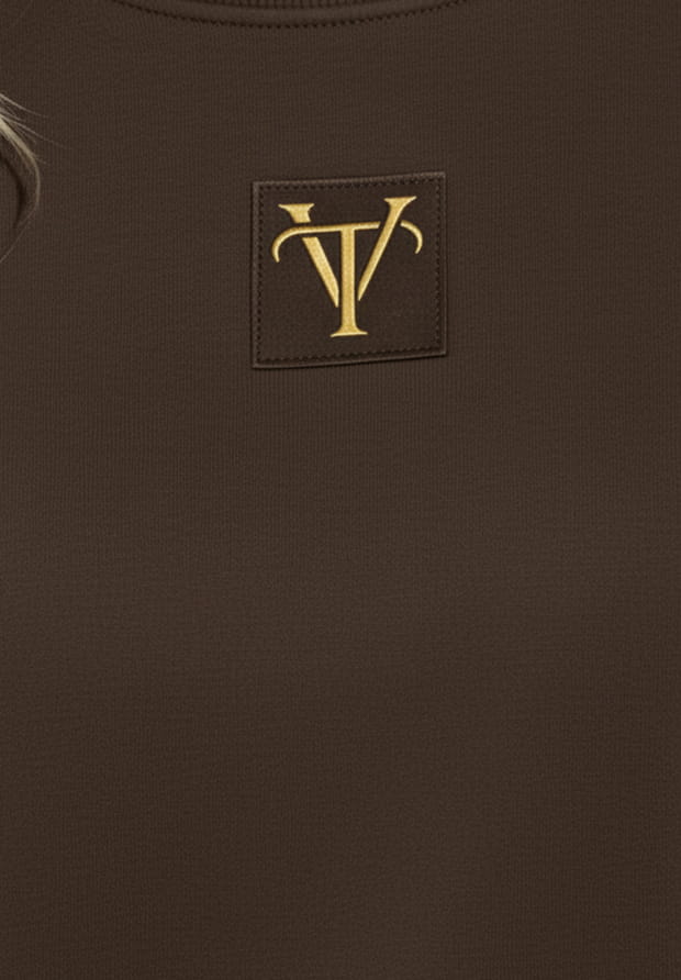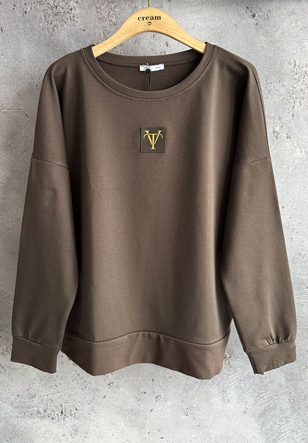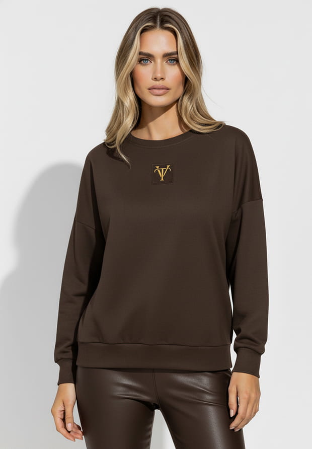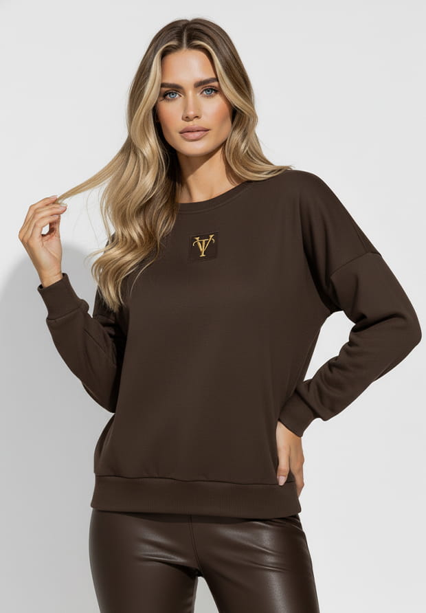 MEGI CIEMNO BRĄZOWA BLUZA Z NASZYTYM ZNACZKIEM / B2541