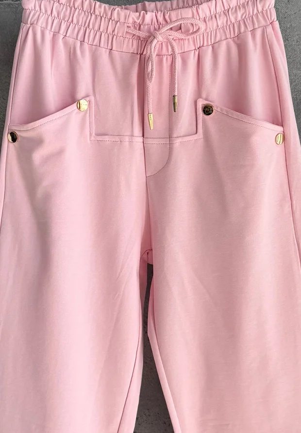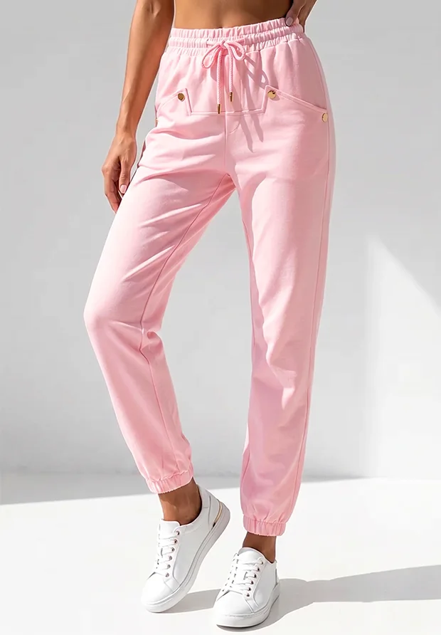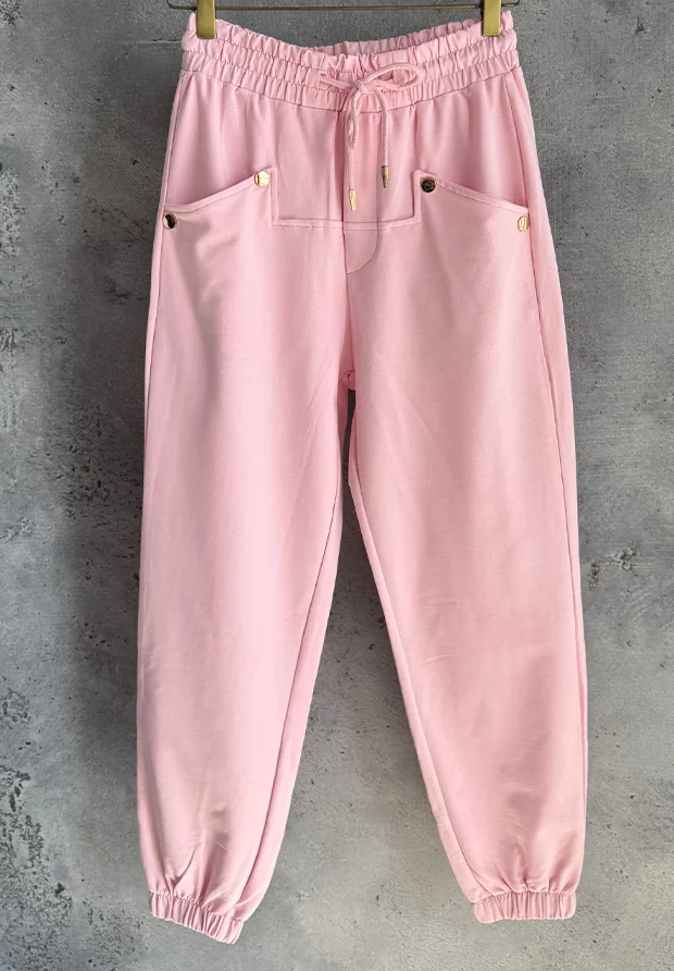 MEGI CUKIERKOWO RÓŻOWE SPODNIE DRESOWE ZE ZŁOTYMI NAPAMI / P1223