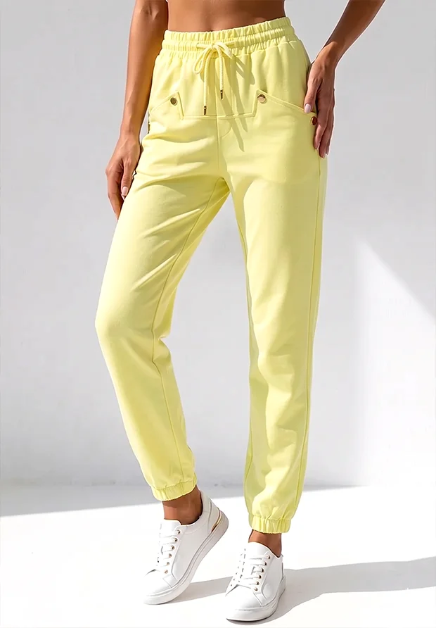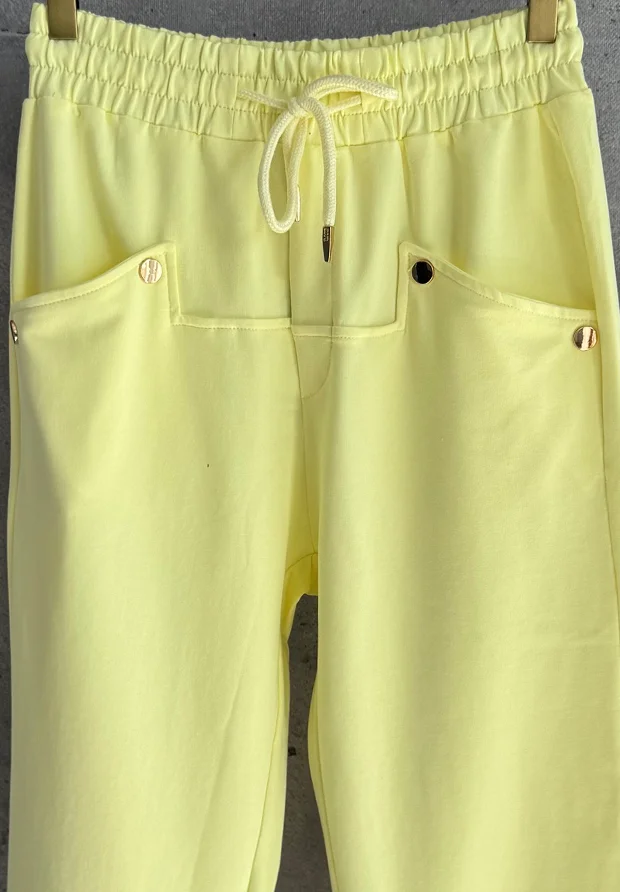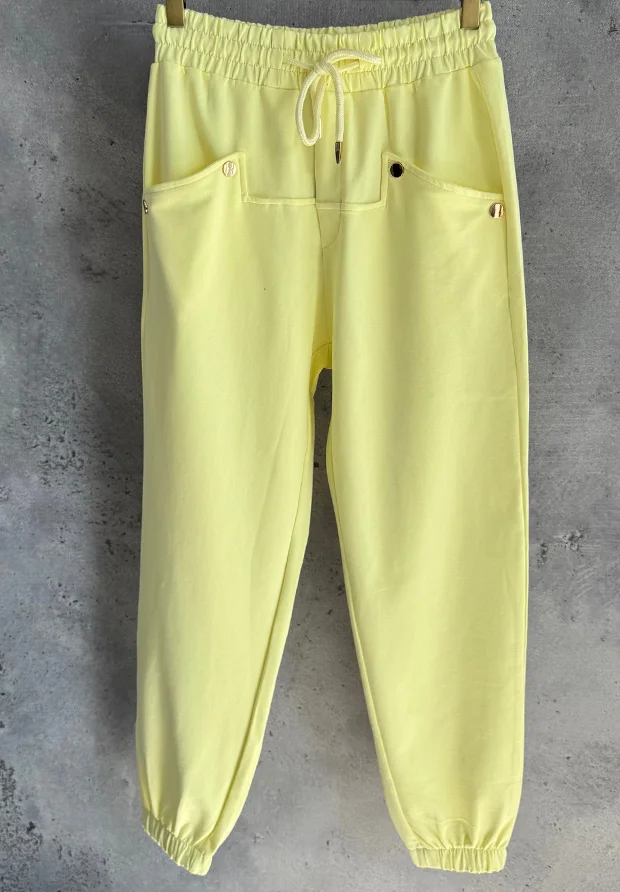 MEGI CYTRYNOWE SPODNIE DRESOWE ZE ZŁOTYMI NAPAMI / P1223