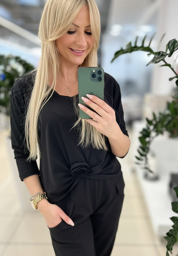 MEGI CZARNA BLUZKA Z RÓŻĄ / B2774