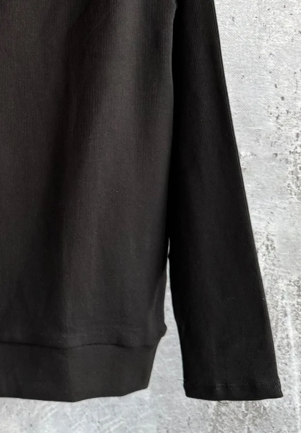 Bluzka uszyta z mięsistego , gęstego materiału prążkowanego.