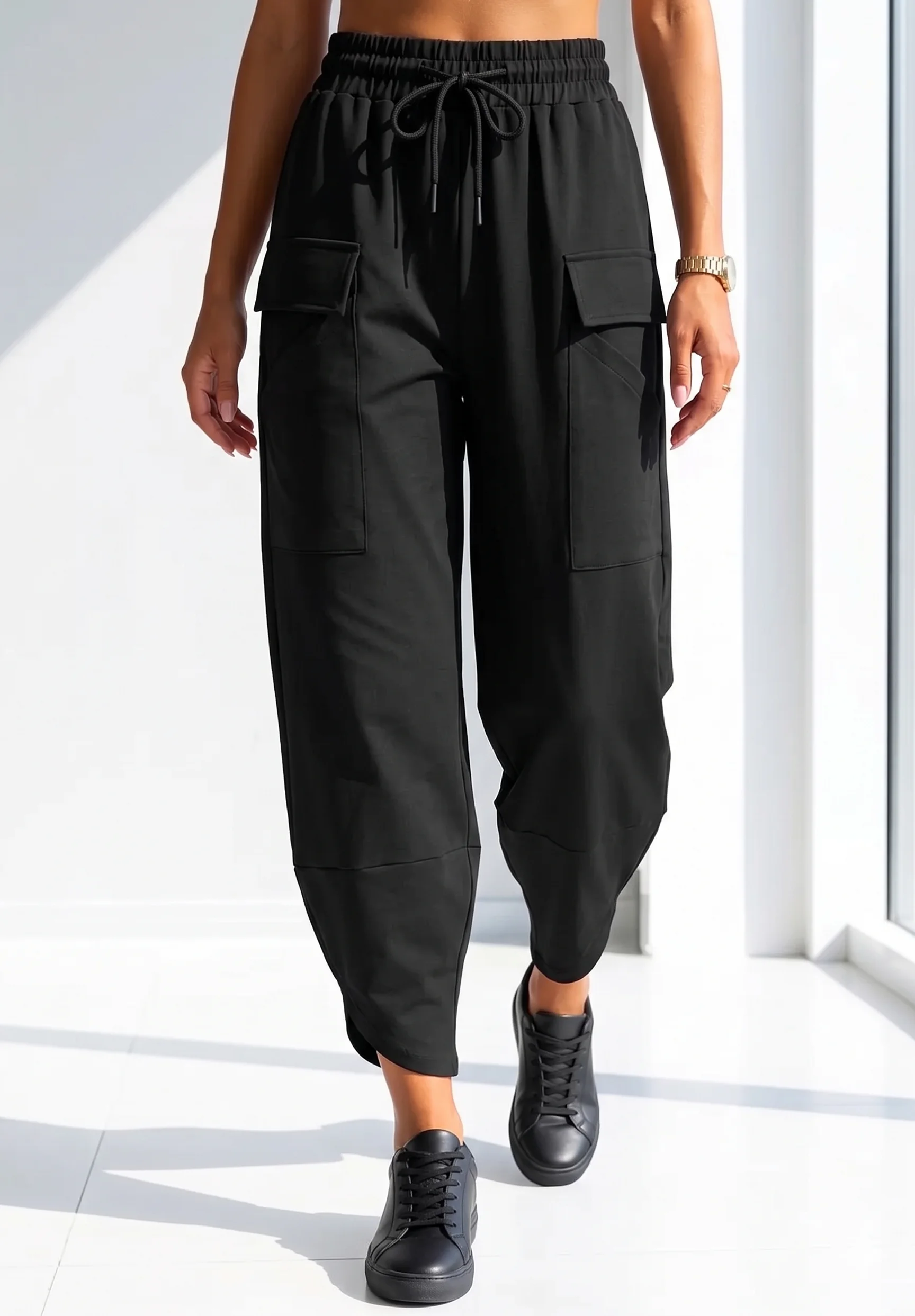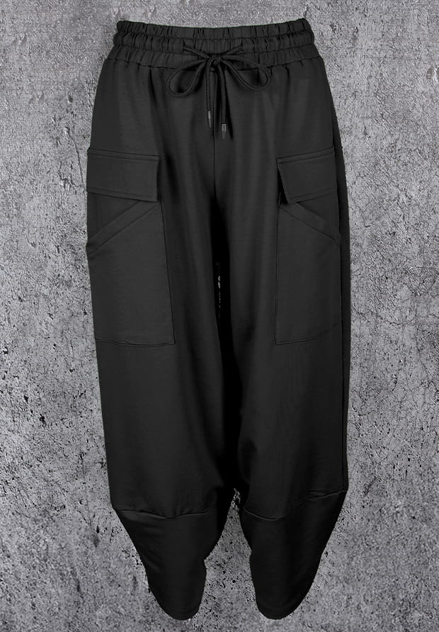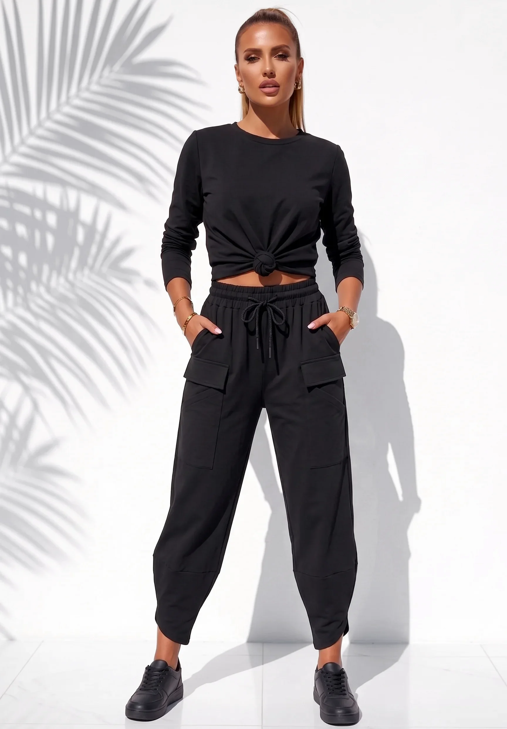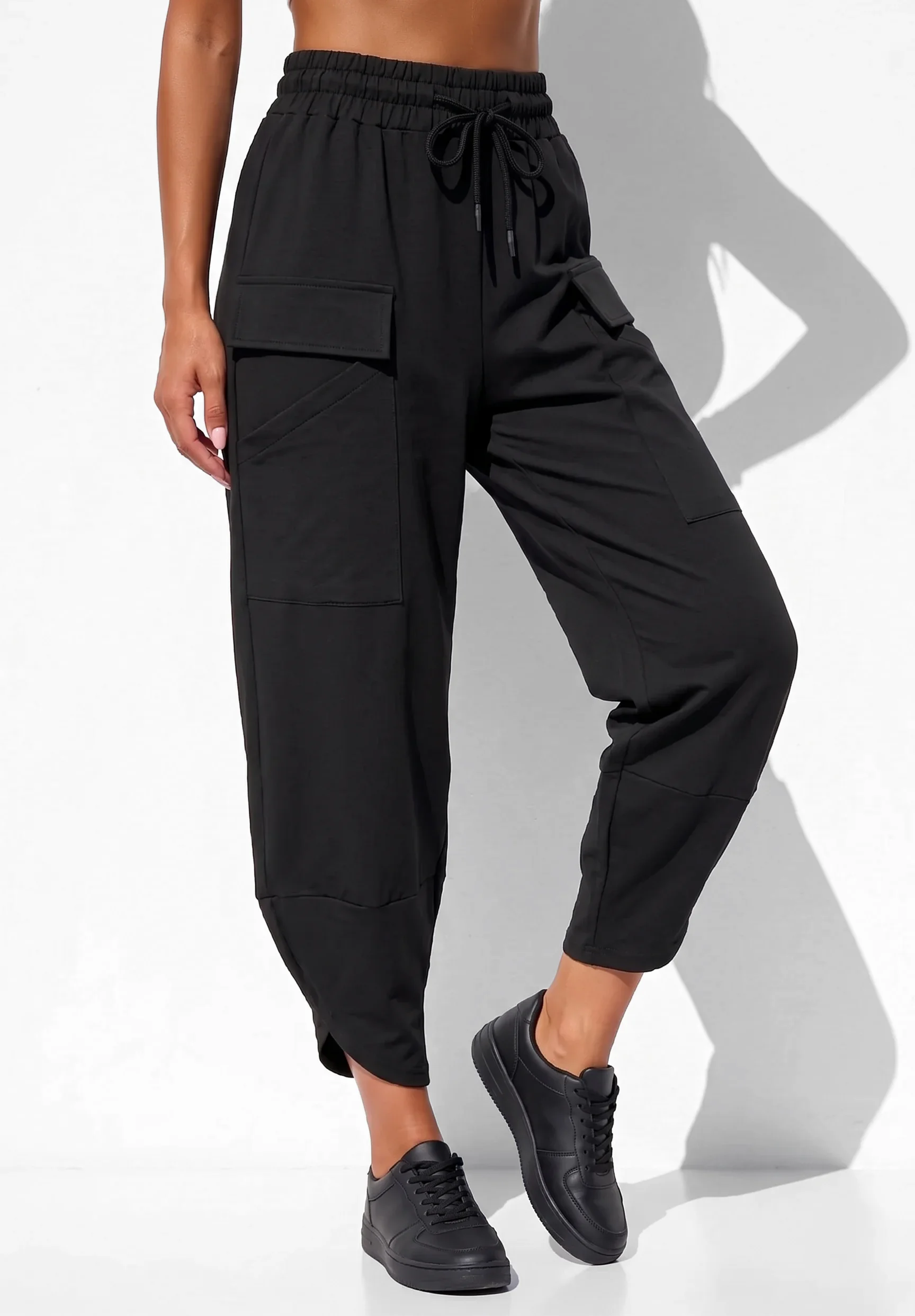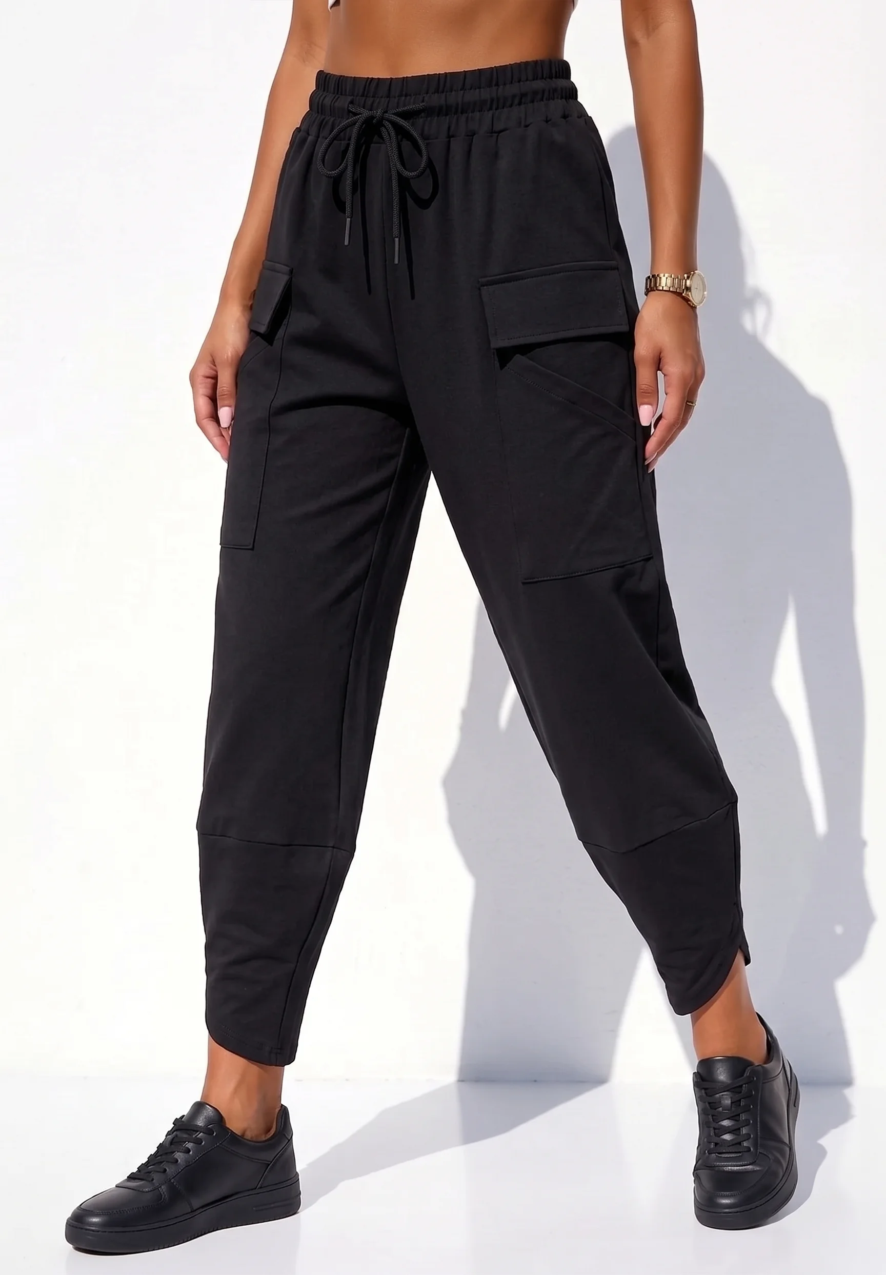MEGI CZARNE SPODNIE TULIPANY Z PATKAMI / P1207