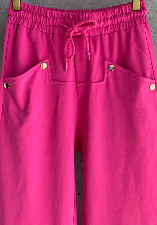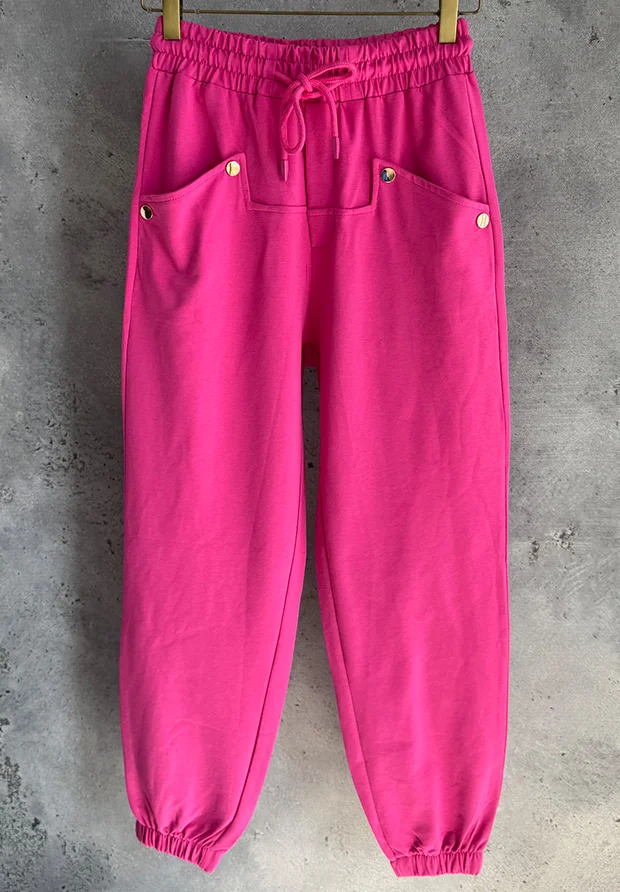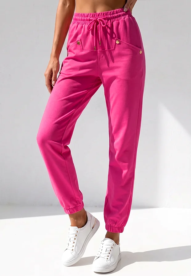 MEGI FUKSJOWE SPODNIE DRESOWE ZE ZŁOTYMI NAPAMI / P1223