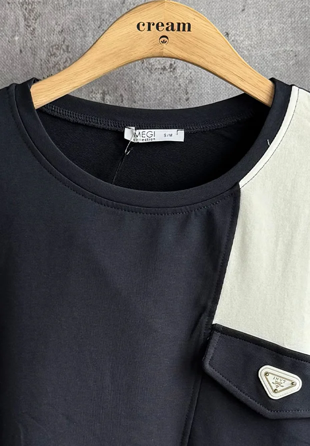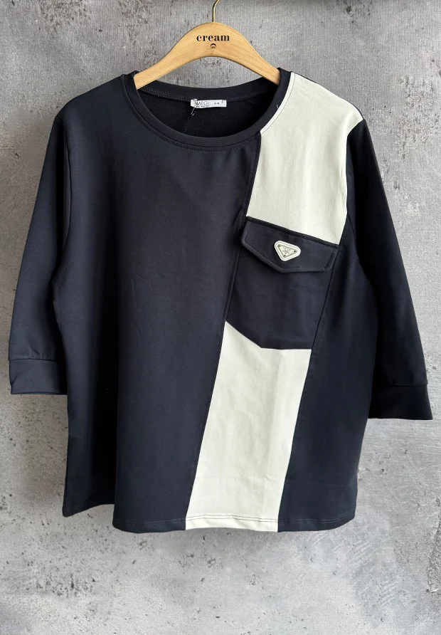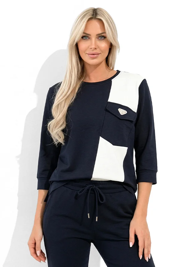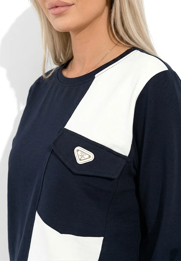 MEGI GRANATOWA BLUZA Z KIESZONKĄ I SILIKONOWYM ZNACZKIEM / B1282