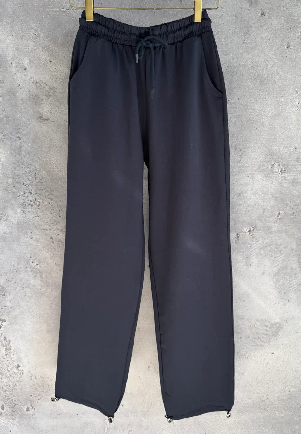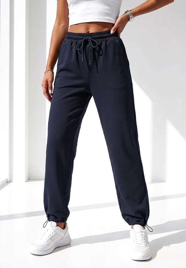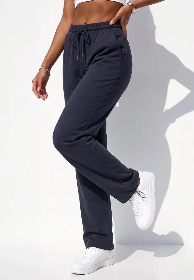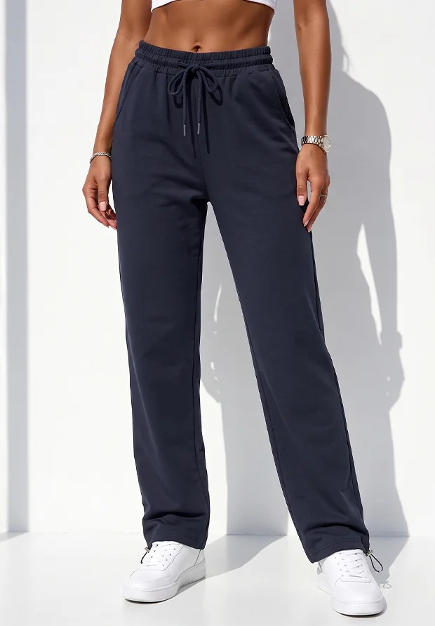 MEGI GRANATOWE SPODNIE DRESOWE PROSTA NOGAWKA Z REGULACJĄ DOŁU / P2836