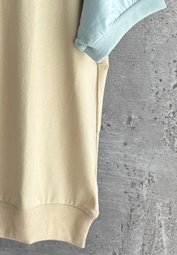 Dekolt , dół oraz rękawki zakończone prążkowanym ściągaczem.