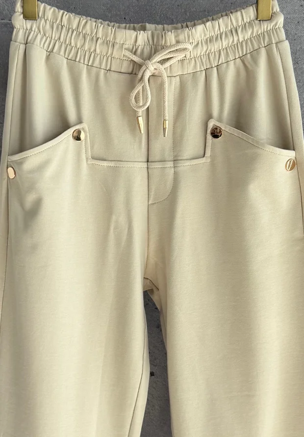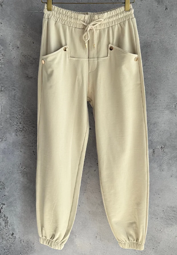MEGI JASNO BEŻOWE SPODNIE DRESOWE ZE ZŁOTYMI NAPAMI / P1223