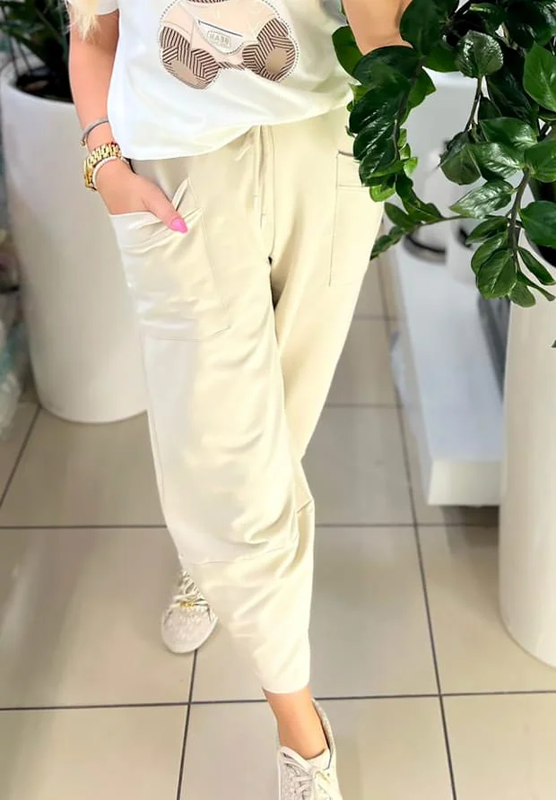 MEGI JASNO BEŻOWE SPODNIE TULIPANY / P1100