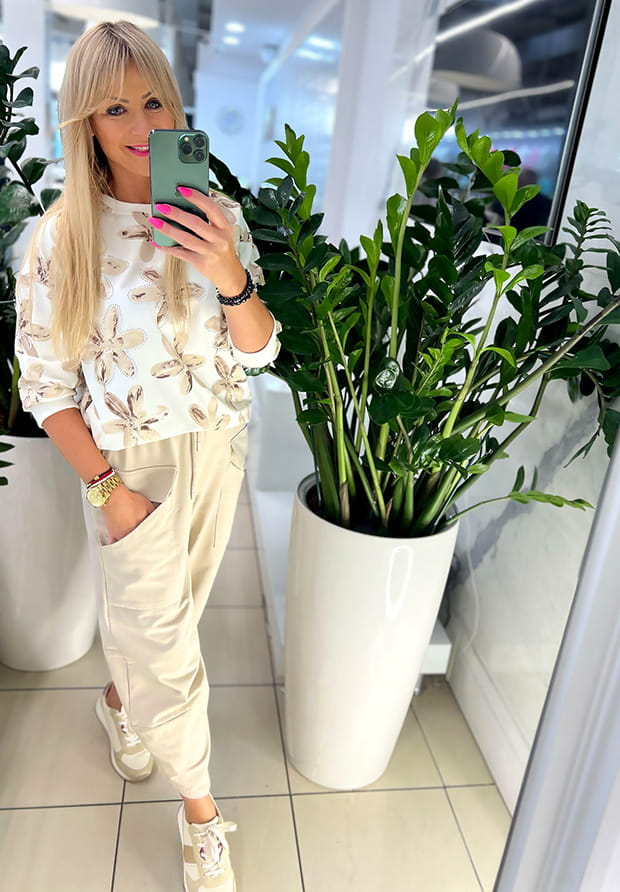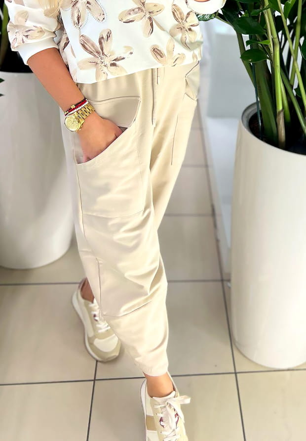 MEGI JASNO BEŻOWE SPODNIE TULIPANY Z PATKAMI / P1207