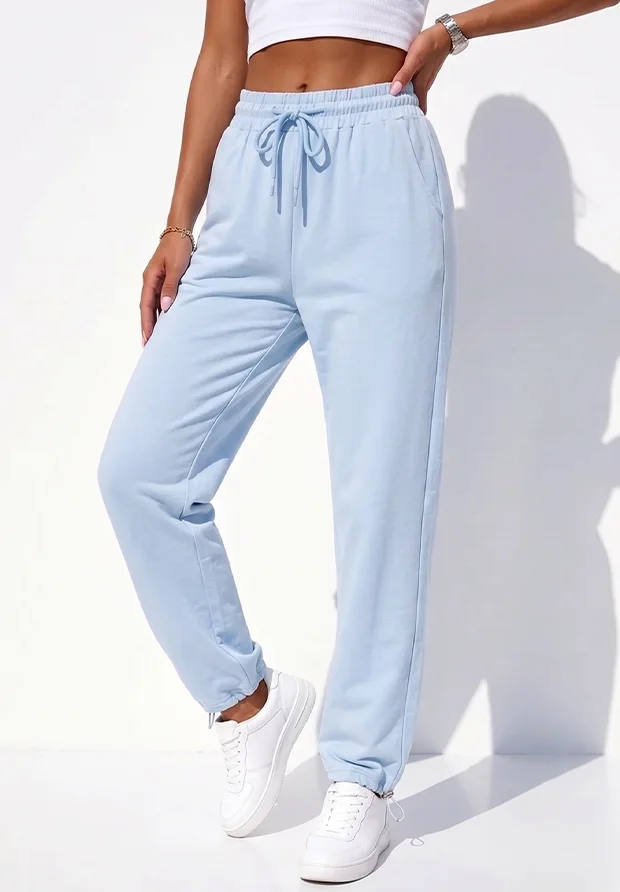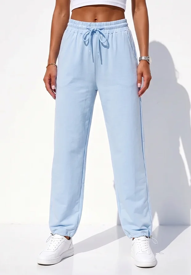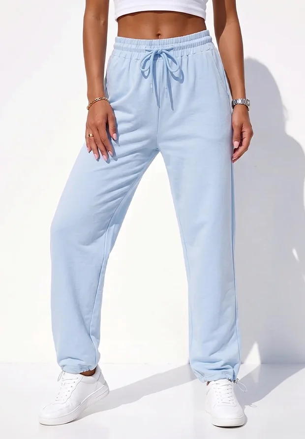 MEGI JASNO NIEBIESKIE SPODNIE DRESOWE PROSTA NOGAWKA Z REGULACJĄ DOŁU / P2836