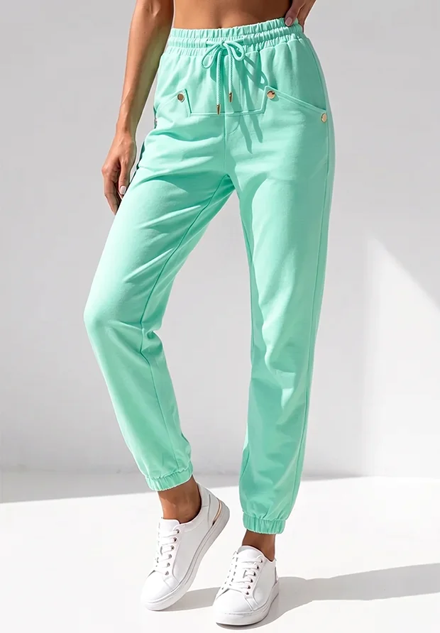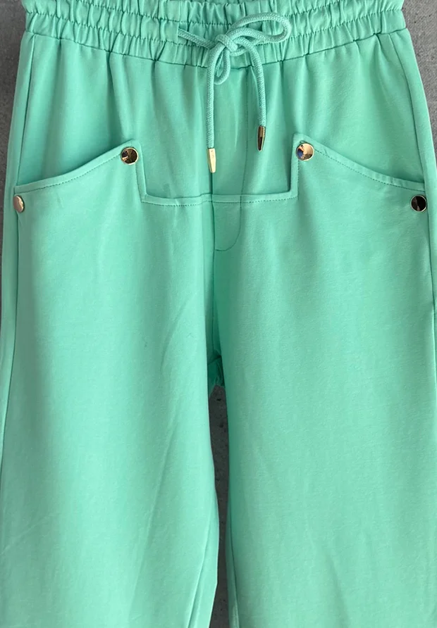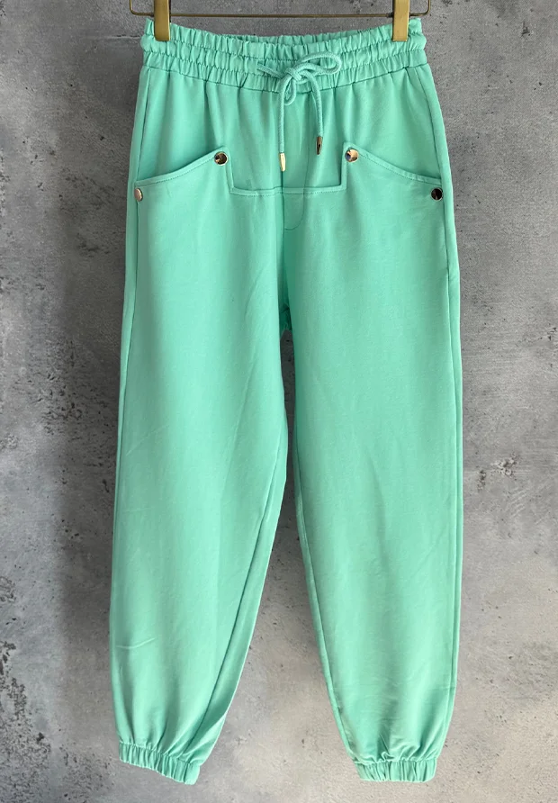 MEGI MIĘTOWE SPODNIE DRESOWE ZE ZŁOTYMI NAPAMI / P1223