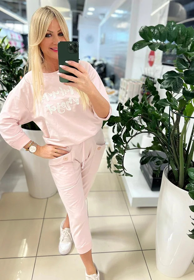 MEGI PUDROWO RÓŻOWE SPODNIE RYBACZKI 7/8 Z KIESZIAMI / P0304