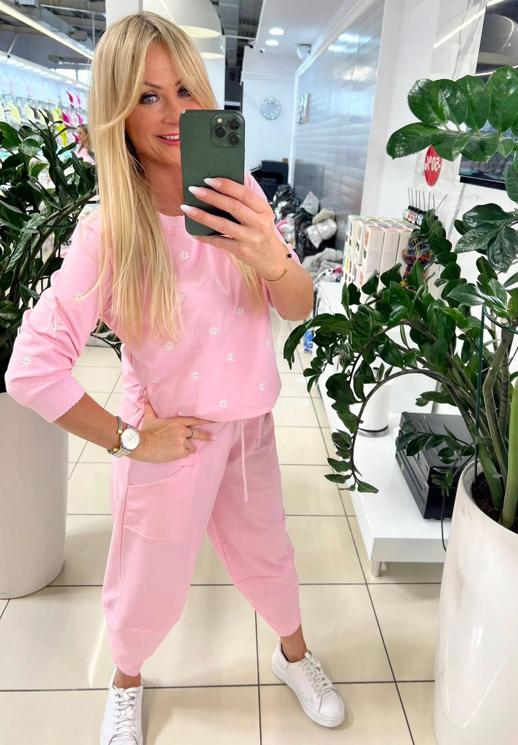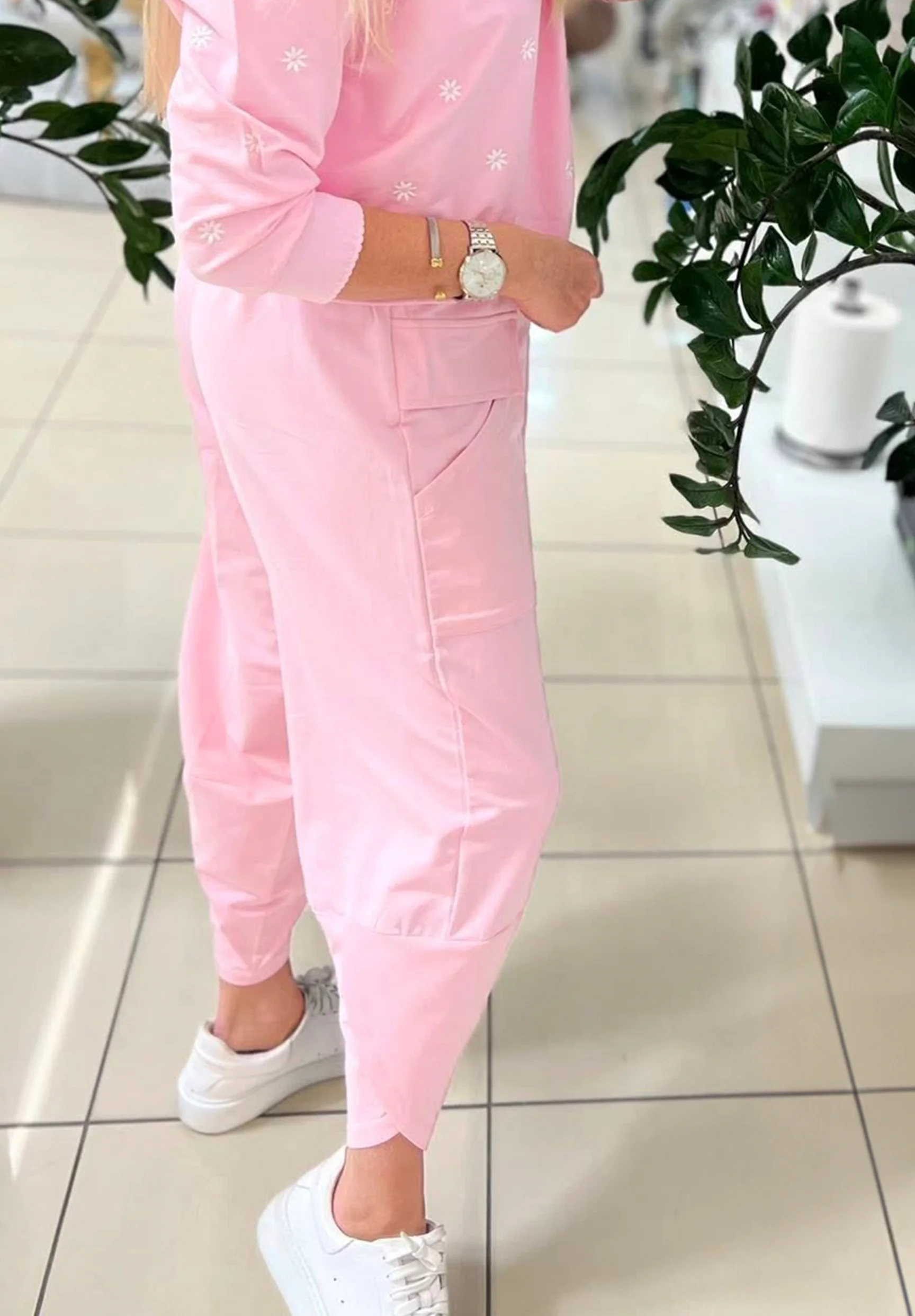 MEGI RÓŻOWE SPODNIE TULIPANY Z PATKAMI / P1207